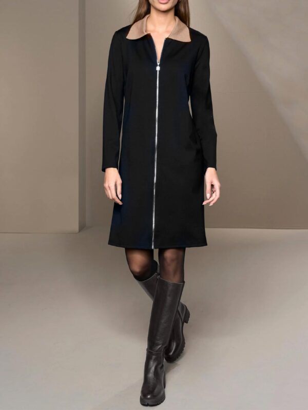 Pútavé džersejové šaty Rick Cardona s košeľovým golierom z kontrastného rebrovaného úpletu. Šípky na hrudi pre lepšie prispôsobenie. Štýl s dlhým rukávom a celoprepínacím zipsom. Rovná forma.