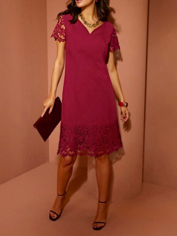 Ľanové čipkované šaty, tmavočervené