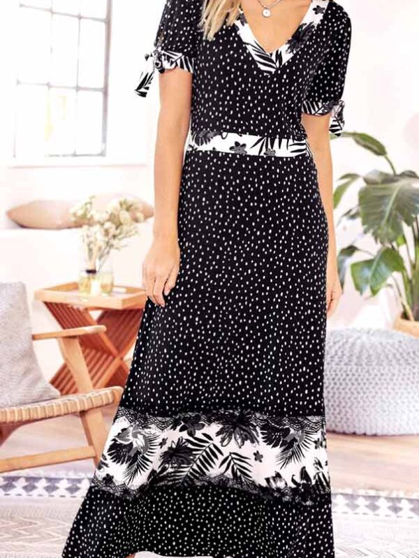 Džersejové maxi šaty, čierno-ecru
