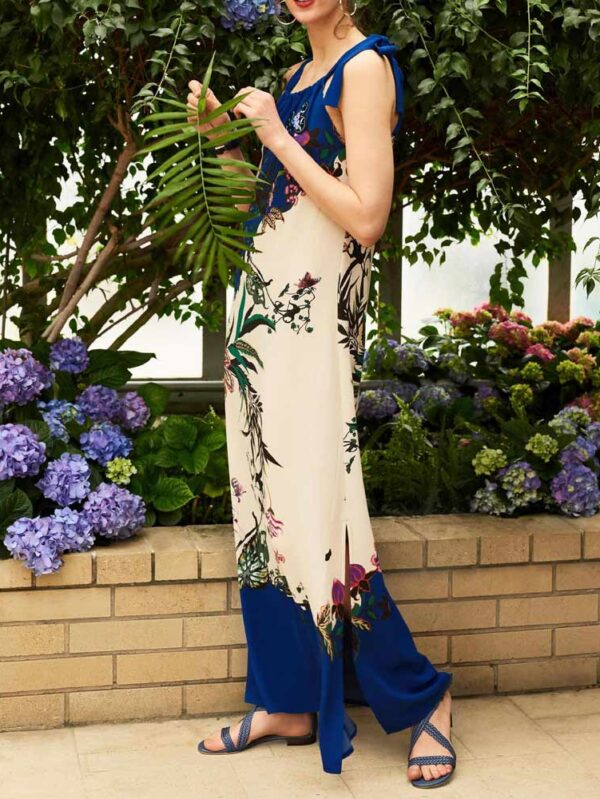 Maxi šaty s potlačou, modro-ecru