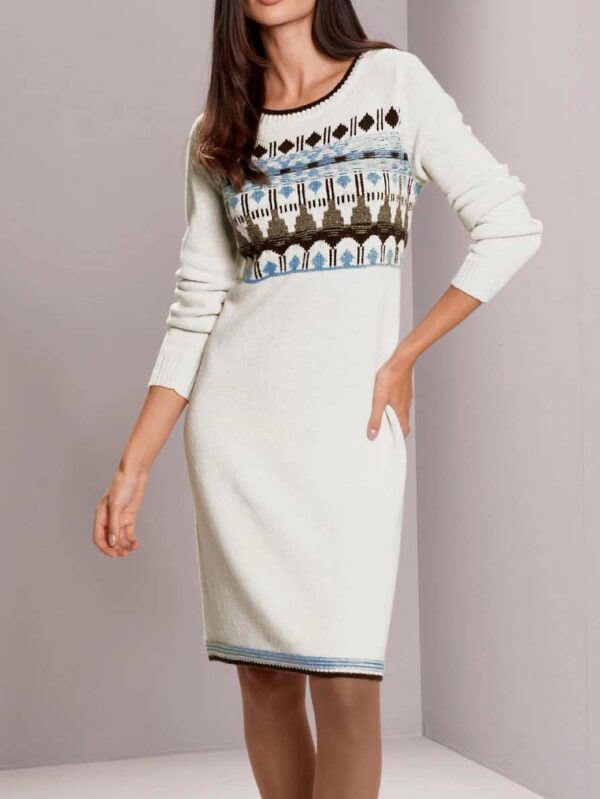 Úpletové šaty s potlačou, slonovinové