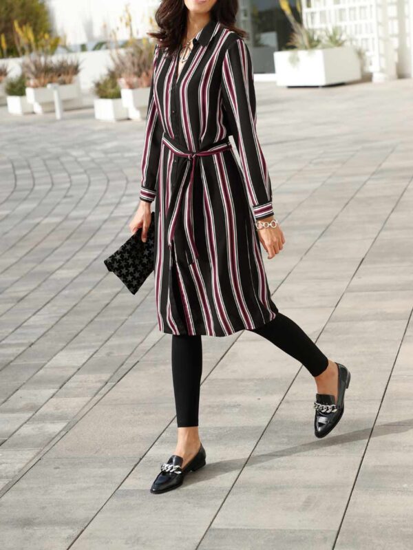 Vybrané jemné štýly s prepracovanými vylepšeniami detailov sú módne obľúbené - takto jednoducho a dokonale vyzerá elegancia. Skvelý módny partner! Jemné splývavé šaty v štýle košeľovej blúzky. Šírku je možné individuálne regulovať pomocou pásika zvýrazňujúceho pás. Košeľový golier, súvislá gombíková léga, dlhé rukávy s manžetami, pútka na opasok.