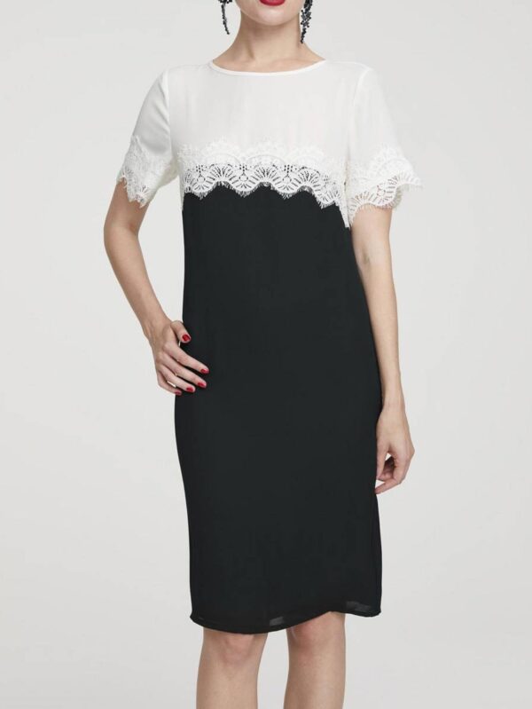 Nádherné šaty od Heine v štýlovom čierno-bielom kontraste. Nadčasovo jednoduchý dizajn s ozdobným lemom z kvetinovej čipky.
