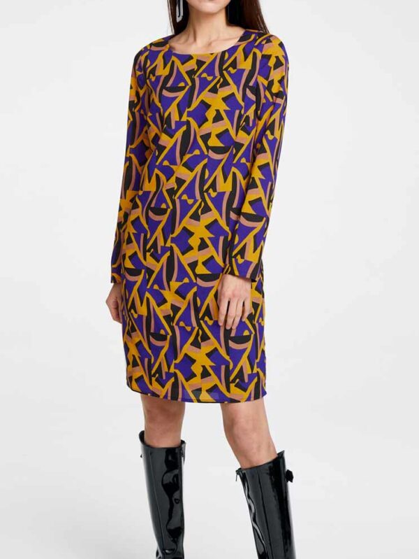 Trendové šaty od Ricka Cardony v módnom prevedení s mimoriadne atraktívnou celoplošnou vzorovou potlačou v skvelej farebnej kombinácii. Dlhý rukáv. Dĺžka cca 98 cm.