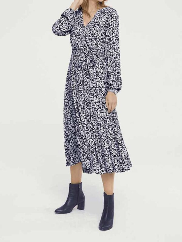 Šaty s potlačou od LINEA TESINI. Trendová maxi dĺžka a ženský romantický vzhľad s hravou kvetinovou potlačou. Top priliehavého strihu s elastickým, volánovým okrúhlym výstrihom, tenkým rozparkom v dekolte a šnúrkami na zaväzovanie. Dlhé raglánové rukávy s elastickým lemom. Elastický pásový šev, rozšírená sukňa s výkyvnými volánmi na leme.