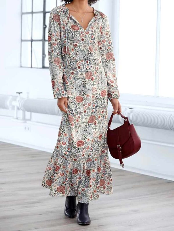 Tento vzhľad vždy funguje - ženský a fantastický: tieto šaty sú atraktívne! Farebne intenzívna kvetinová potlač dýcha štýlom módnu hravosť a široké, rozšírené 3/4 rukávy s flounces vytvárajú krásne akcenty. Dĺžka cca 94 cm.
