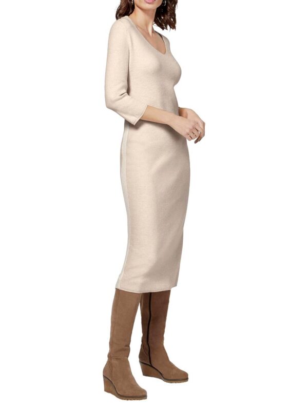 Pletené šaty Création L v pružnom, jemnom melanžovom vzhľade. Kontrastné pruhy na boku dávajú športové tóny. Trendová midi dĺžka cca 108 cm.