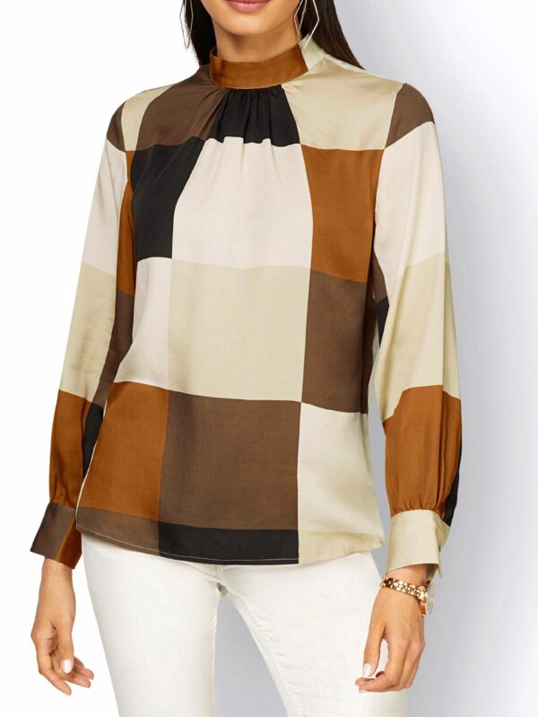 Kontrastná blúzka Creation L s moderným károvaným vzorom. Ležérny rovný strih s kontrastným vrstveným vzhľadom na rukávoch a spodnom leme. Ľahko udržiavateľná krepová kvalita v kombinácii s jemne priehľadným šifónom v hornej časti vpredu aj vzadu.